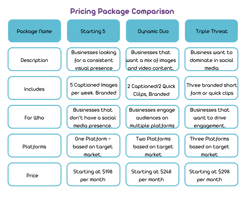 Perfect for businesses who understand that video is the future of social media. Whether you're sharing product demonstrations, customer testimonials, behind-the-scenes peeks, or expert tips, this package ensures your brand maintains a strong, professional presence across all three platforms.